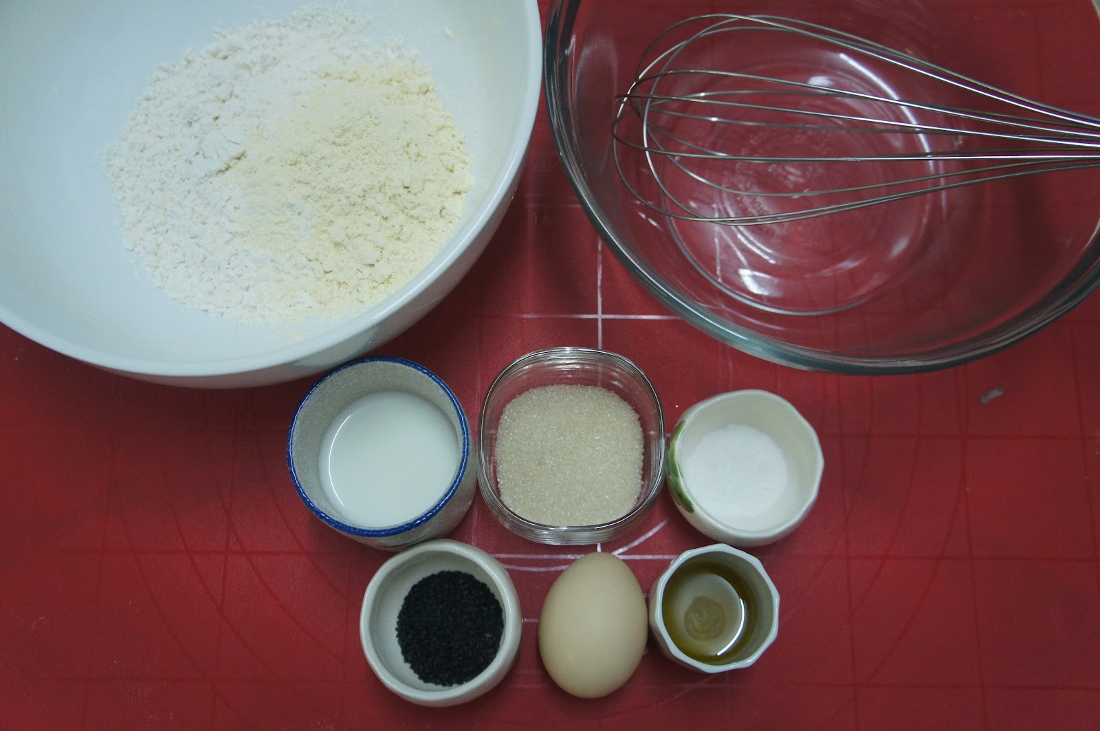 小米黑芝麻蒸蛋糕 Steamed millet & black sesame sponge cake